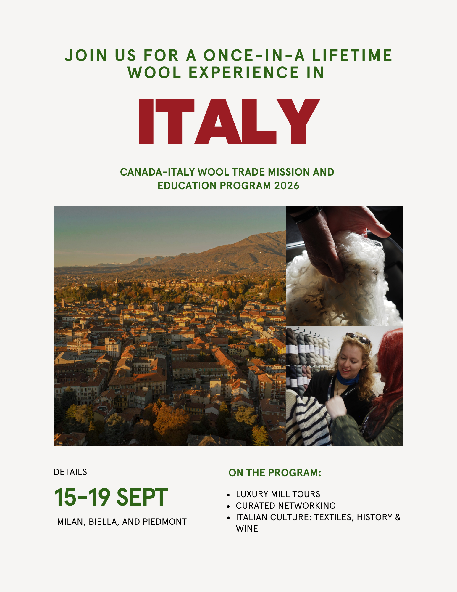 We’re pleased to open registration for our third international wool trade mission — and our first to Italy.